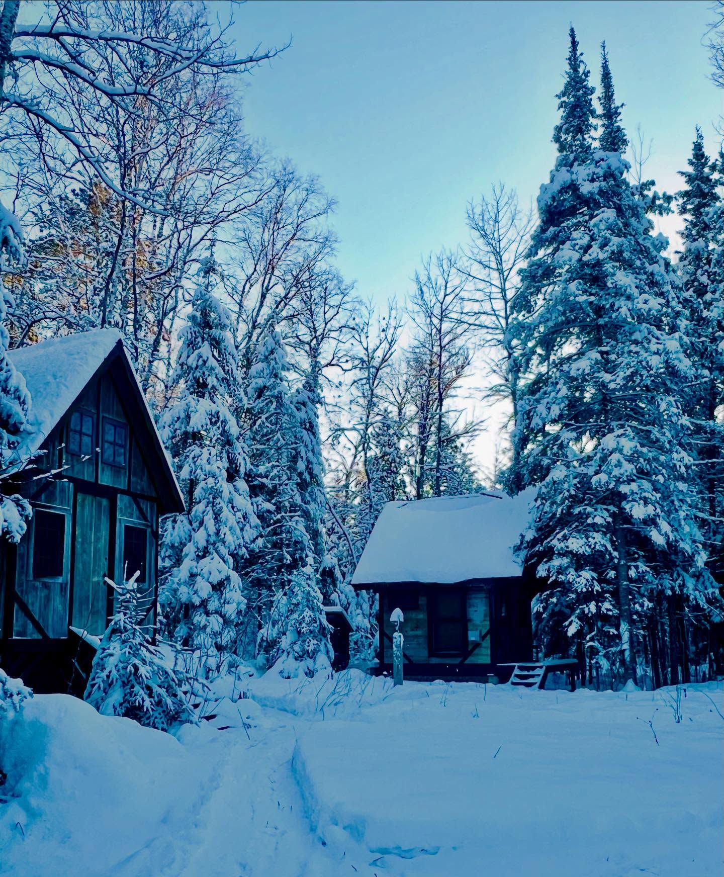 We moved to Ely from separate big cities in search of the same thing: peace, quiet and more meaningful lives. Nine months after meeting on a lakeshore, we were married in Scotland and soon after, purchased a parcel of wooded land near Ely, Minnesota. Eric had a vision of creating a small rustic cabin. No electric. No plumbing. Off the grid...